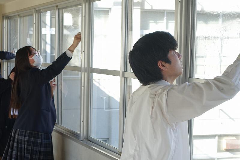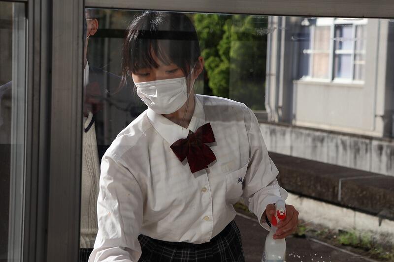 4月16日(木)、本年度初の部活動は、ミーティングの後に毎年恒例の窓拭きをしました。汚れがひどく、苦戦しながらも新聞紙やガラスワイパーを使って丁寧に磨きました。本年度、ボランティア部(南)は、3年生8名、2年生5名で始動しました。