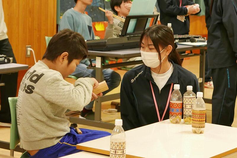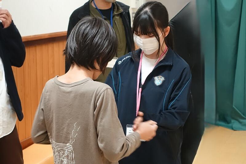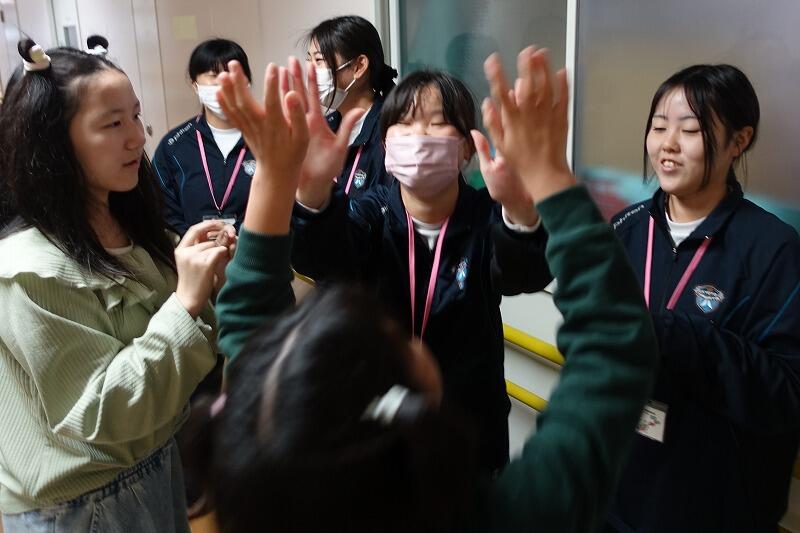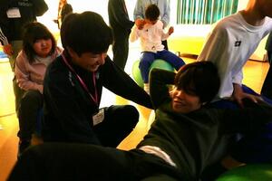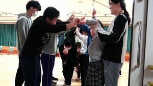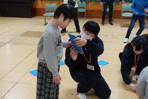 《生徒の感想(抜粋)》最近、学校行事や人間科学科の取組などの影響で昼休み交流もなく、久しぶりの八幡支援学校の生徒との交流となった。前期は特定の生徒と一緒にいることが多く後悔したので、後期は八幡支援学校の先生の生徒との関わり方を参考に、多くの生徒と交流することができた。しかし、生徒が涙を流していた時、どう対応すればよいのか分からず、動けなかった。その後、先生が来るとその生徒は泣き止んだ。交流に関して、まだまだ難しいことや悩むこともあるが、交流を積み重ねてできることを増やしていきたい。