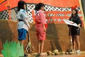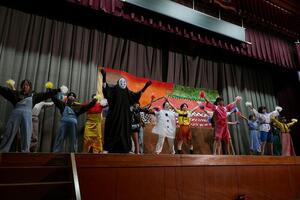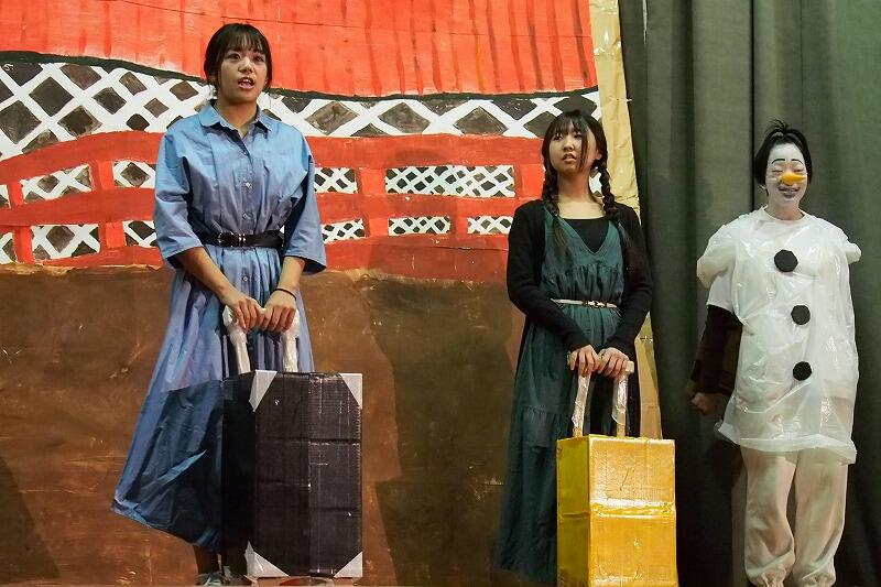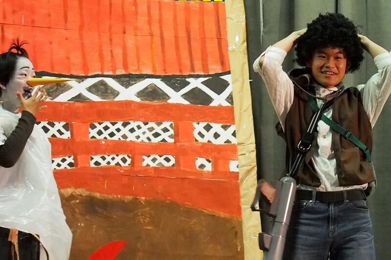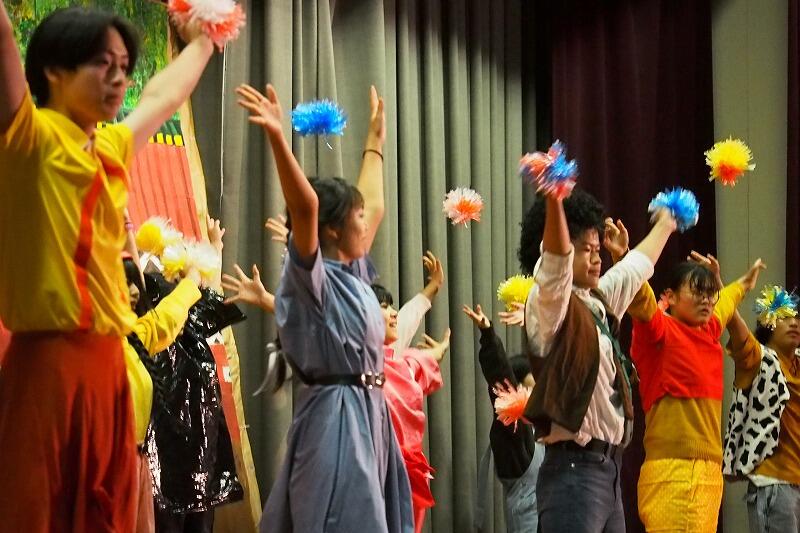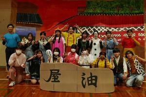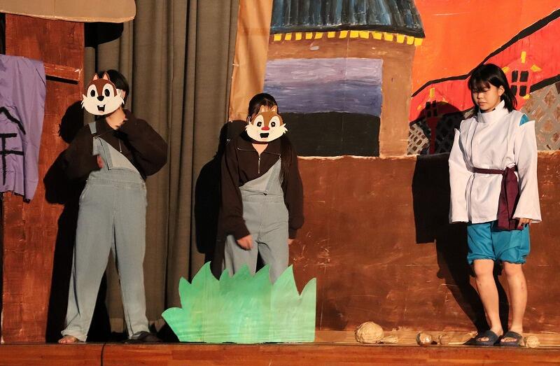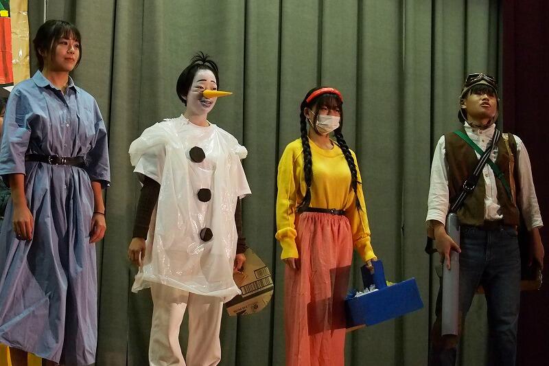 11月7日(金)、南キャンパス文化祭で、1年生は舞台発表(仮装パフォーマンス)がありました。人間科学科1年1組は、「千と銭湯」というテーマで、オリジナルストーリーを発表しました。八幡支援学校小学部の皆さんに楽しんでもらうために、ジブリやディズニーなどのあらゆるキャラが登場し、会場を盛り上げました。そして最後は全員で「アロハ・エ・コモ・マイ」を踊り心を一つにしました。劇やダンス練習だけではなく、衣装、小道具、大道具の作製など、大変なことがたくさんありましたが、皆で達成感のある発表ができました。