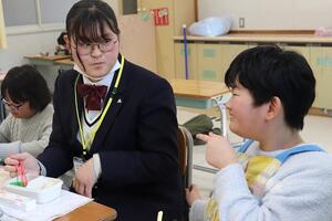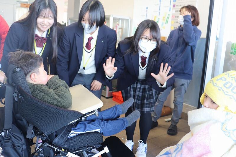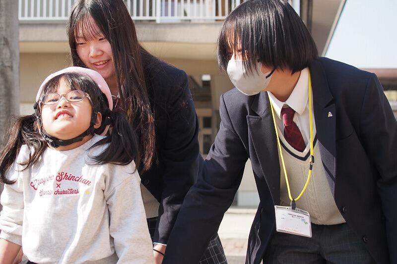 2月4日(水)昼休み・5限、八幡支援学校小学部の児童のみなさんと人間科学科1年生の特別昼休み交流がありました。本校生徒が小学部の5クラスに分かれ、昼食や昼休み交流、終わりの会に入らせていただきました。また最後にはバスのお見送りもさせて頂けました。今回で4回目となる交流でしたが、生徒たちは今年度の最後の交流であることを意識しながら、これまでに気づいたことやできなかったことを実践しようとする姿が多くみられました。