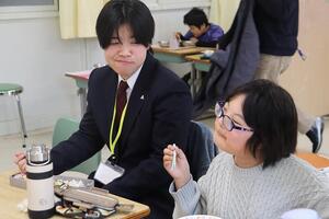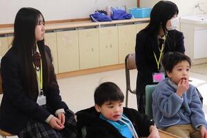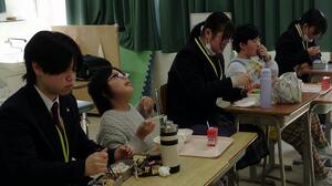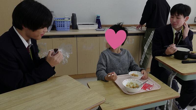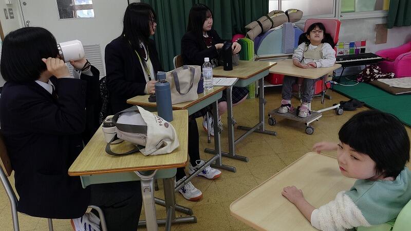 《生徒感想(抜粋)》特別昼休み交流を終えて、今までの授業交流とは少し違い、お昼ご飯を一緒に食べ、「好きな食べ物」や「好きなキャラクター」などの質問を通して今まで話す機会が少なかった児童さんとも話すことができた。また今回の目標としていた、自分から積極的にコミュニケーションを取ることを達成することができた。今回の交流では、昼食の後、帰りの会までの間に鬼ごっこをしたり、教室で一緒に音楽を聴いたりした。帰りの会では誰が司会をするのか聞かれた時に複数の児童さんが「自分がやる」と言っているのを見て、良いなと感じたとともに、今までの交流では見られなかった一面を見ることができた。最後にバスのお見送りをして、全員をお見送りすることはできなかったが、みんなが手を振ってくれてとても嬉しくあたたかい気持ちになった。