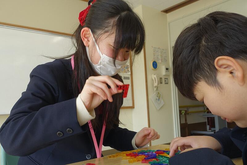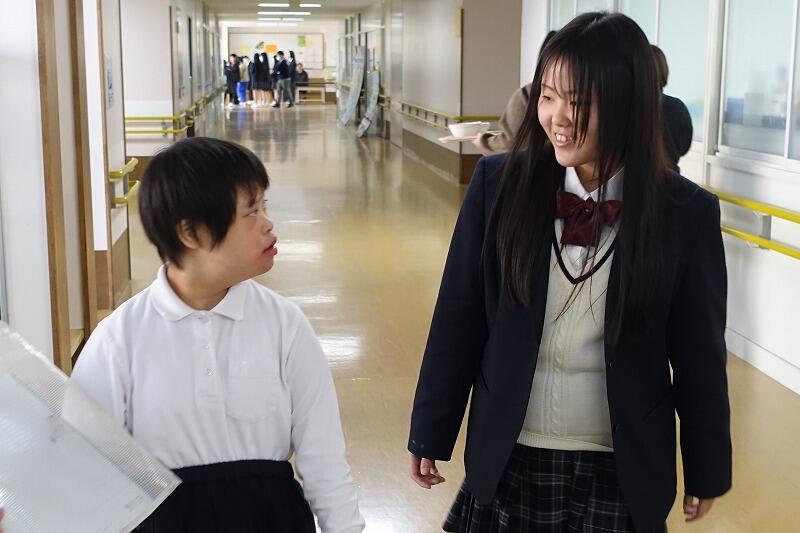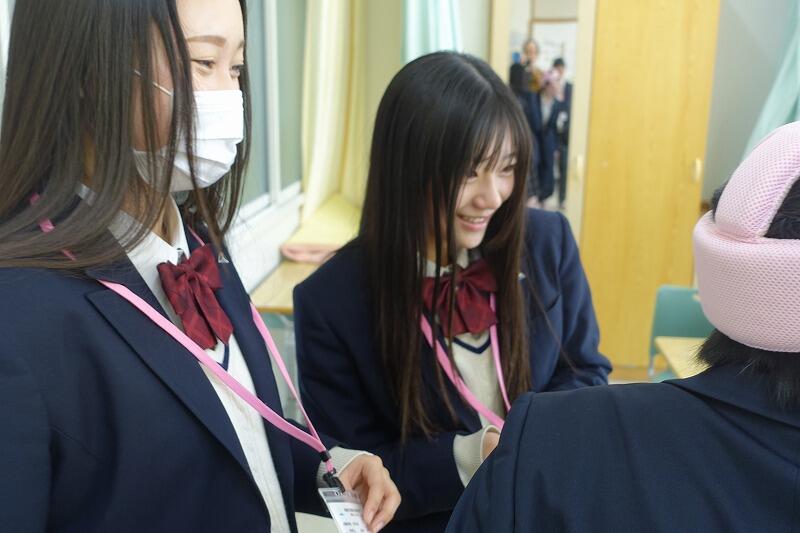 2月4日(水)、人間科学科2年と八幡支援学校中学部との特別昼休み交流を実施しました。普段の昼休み交流とは異なり、昼休みから5限までの長い時間を設定しました。昼食後、八幡支援学校に行き、各クラスに分かれて交流、終わりの会に参加、下校の見送りなど、普段の授業交流や昼休み交流ではできないことをさせていただきました。この取組は今回が初めてでしたが、次年度以降も継続できればと思っています。