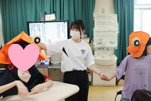 《生徒感想(抜粋)》初めての授業交流で、多くの気づきがありました。例えば言葉を覚えるときに手を叩いてリズムを取って音と一緒に言葉を教えられていたことです。一人一人に個性があるからこそ、誰もが分かりやすく学べる工夫をされていて、とても大切だと感じました。私もやってみましたが、今回はあまり上手くできなかったので次回またチャレンジしてみたいと思います。またどんな時も周りを見ながら児童の安全を確保されており、私ももっと視野を広く持たないといけないと感じました。嬉しかったことは、緊張しながら絵本を読んでしまい、上手くできなかったと思っていたところ、児童のみんなが笑顔で拍手をしてくれたことです。そして最後には「また来てね」や「明日は来てくれないの?」などの声掛けをしてくれてほんとにうれしかったです。後期の授業交流に向けて反省点を改善し、もっと良い交流にしていきたいです。