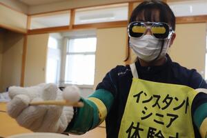 《生徒感想(抜粋)》色々な場所で高齢者を見かけますが今までは何もわかっていませんでした。今回のインスタント・シニア体験を通じて、足や手が曲がりにくかったり、挙げづらかったり、歩くだけでもすごく体力が必要で、階段を上ることはとても大変でした。でももしここに手すりがあれば楽かな?とかエレベーターがあると楽かな?など身近なことの問題や不便さに気づくことができました。また困っている時はどのようなサポートが必要かなども考えることができました。