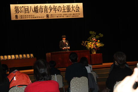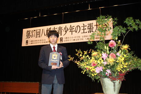 11月3日に八幡市文化センターにおいて「第37回八幡市青少年の主張大会」が開催されました。本校からは2年生の生徒が発表者として参加し、「高校生活で分かったこと」と題して考えたことをまとめ、非常に堂々とした姿でしっかりと発表してくれました。
