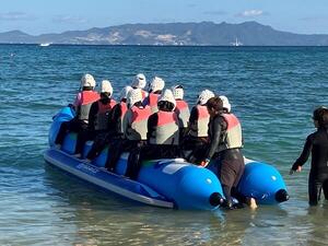 選択した体験ごとに分かれて、マリン体験ではドラゴンボートやリラックスを、文化体験ではジェルキャンドルの作成を体験しました。