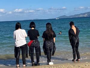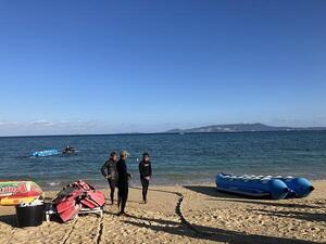 2日目の午前中はホテルのプライベートビーチでマリン体験をしました。