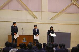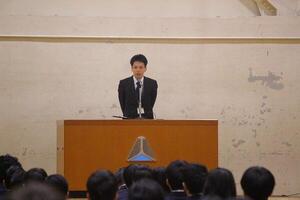 今年度の4月に「可能性に挑戦すること」を、9月には「対話をすること」をテーマに話しました。1年を振り返って皆さんはどれだけ実行できたでしょうか。挑戦することは気持ちを前向きにしてくれます。対話し、相手を理解しようとすることで争いを減らすことができます。いよいよ春休みですが、心と体を整えて新年度を迎えてください。