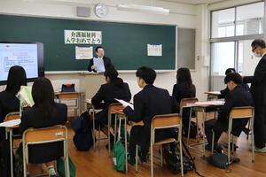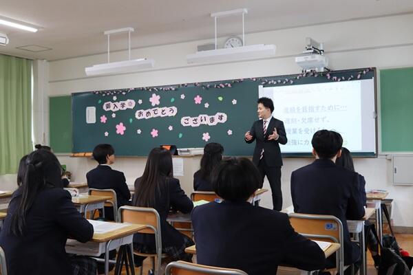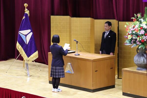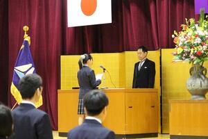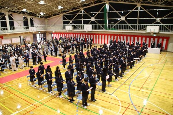 新入生は、期待と不安を抱きながら担任の先生を先頭に入場した後、人間科学科、介護福祉科、普通科、95名の入学が校長先生より許可され、京都八幡高等学校1年生としてスタートを切りました。
