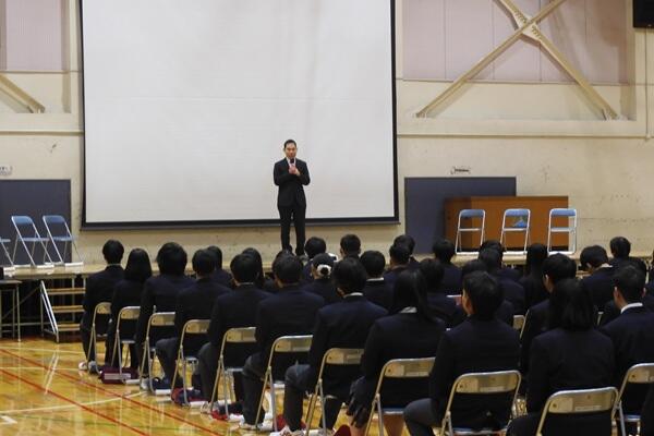 始業式では校長先生から、明日入学する新入生を温かく迎え入れ、学校生活を支えてほしいというメッセージが伝えられました。また、本校が創立20周年を迎える節目の年であることにも触れ、これまで受け継がれてきた本校の良さを全校であらためて共有していきたいとの話がありました。あわせて、変化の大きいこれからの社会を生きていくために、学び続ける姿勢や人と支え合う力を大切にしながら、高校生活を通して大きく成長してほしいという思いが語られました。