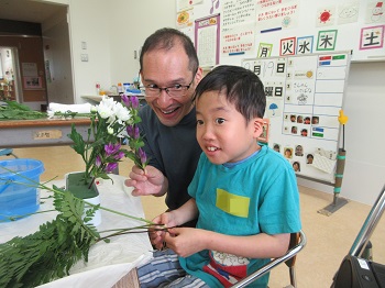 今年も、京都府文化の心次世代継承事業「学校・いけばな・出会いプロジェクト」として、池坊の山中知昌先生ら3名の講師を招き、また、参観日として保護者の方にもお越しいただき、みんなで生け花に挑戦しました。