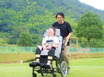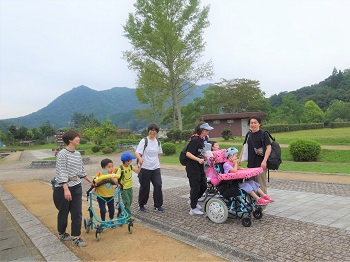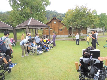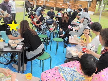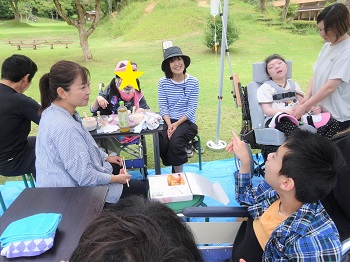 療育センターで準備していただいたお弁当を一人一人が受け取り、開放的な屋外で味わいました。