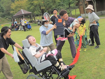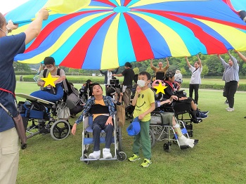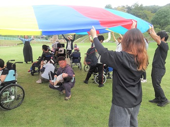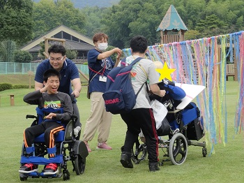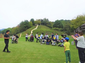 公園では、みんなで踊ったり、徒競走をしたりして楽しみました。また、今回初めて、病棟の児童ともタブレット端末を用いてリモートで遠足に参加することができました。