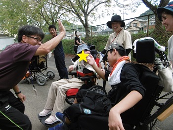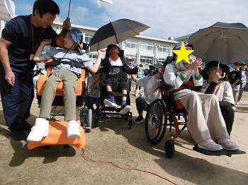 また、会場全体が掛け声や声援で盛り上がってくると、行永分校の生徒たちもテンションが上がり、一緒に声を出したり、腕を大きく振ったりして、応援しました。