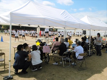 行永分校の生徒たちにとっては、競技も競技の合図に使うピストルの音も目新しく、ドキドキワクワクしながら中学生たちの様子を見ました。