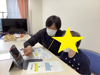 先日、リモートで消防署見学を行った、病棟で学ぶ児童。