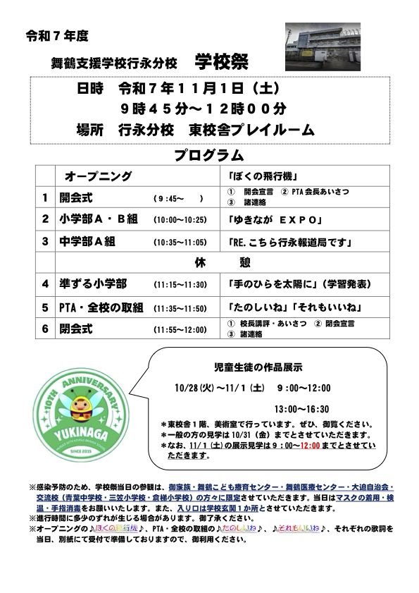 保護者の皆様、行永分校関係各所の皆様の御来場をお待ちしております!