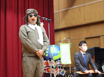 また、PTA会長は「紅の豚」に扮して登場し、行永分校らしく、笑顔いっぱいで学校祭が始まりました。