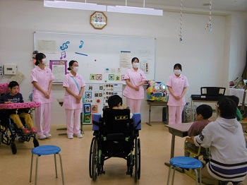 今日は、療育センターで実習中の看護学生が行永分校に見学にきました。