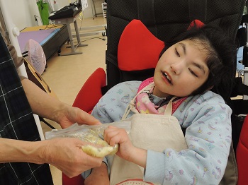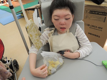 今日は、小学部A組で、収穫したサツマイモを使った学習を行いました。