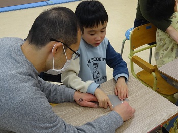 次回は、折り紙の馬とタブレット端末で描いた台紙を使って、「あるもの」ができるようです。どんなものが完成するのか楽しみです。