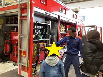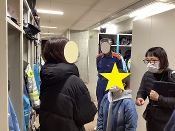 以前、居住地校の消防署見学にリモートで参加しました。その後の学習で新たに出てきた知りたいことについて、実際に自分の目で見て学ぶ機会を、舞鶴市東消防署の協力のもと、実現することができました。