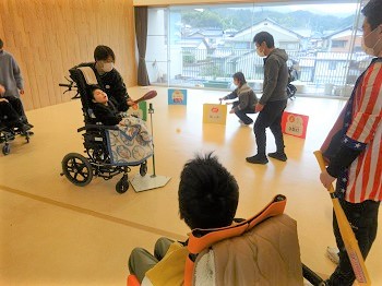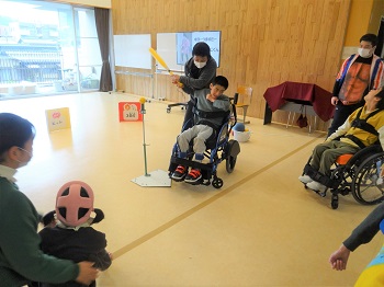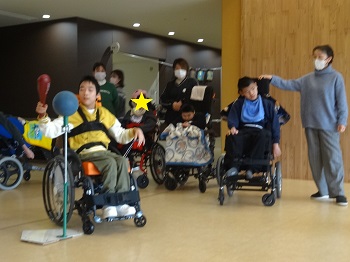 一通り、試し打ちを行った後は、「ヒット」や「ホームラン」等が書かれたパネルをねらい、お互いに励ましの言葉をかけながら、楽しく取り組むことができました。 今後は、打撃だけでなく、守備の練習も行い、チーム対抗のゲームに繋げていく予定です。
