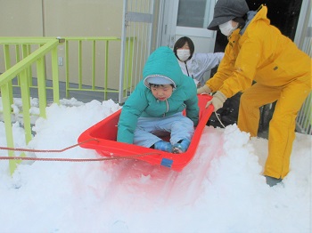 他の子どもたちも、雪用ウエアをバッチリ着込んで、雪遊びを楽しむ様子が見られました。