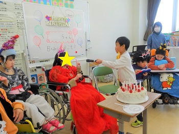 ゆきぶんブログ~子どもたちの様子~小学部B組では、担任の先生の一人が、2月が誕生日ということで、今日、誕生日会を行いました。