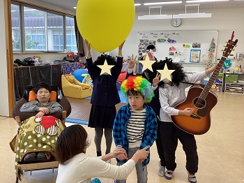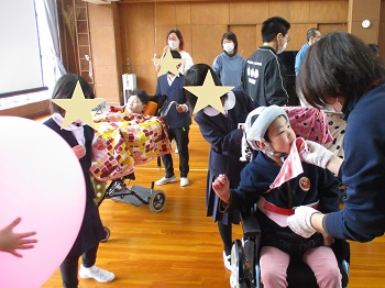 その後は、交流校が提案した「じゃんけん列車」をしたり、小学部の教室や西プレイルームで自由遊びによる交流をしたりしました。