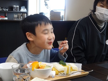 今日のために、教室で、レストランでのマナーや食事の際に頑張りたいことなど事前学習してきました。その成果もあり、会話を楽しみながら、おいしく食事をすることができました。
