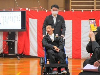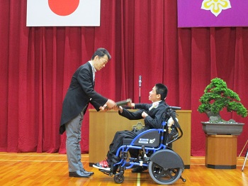 春の暖かな日差しが眩しい今日、行永分校の卒業証書授与式が行われ、中学部の生徒1名が巣立ちました。