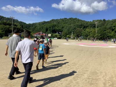 9月6日(土)、三河内小学校グラウンドにて、創立150周年記念行事の一環として「人文字写真」の撮影を行いました。学校運営協議会の皆様と教職員が協力して、グラウンドに下書きの線を引くなどの準備を行い、地域の方々、児童、保護者、教職員、そしてこれまで三河内小学校でお世話になった先生方も一緒に、人文字をつくりあげました。こうして多くの方々のご協力のもと、人文字という形で150周年の記念を、記録として、そして記憶として残すことができました。
