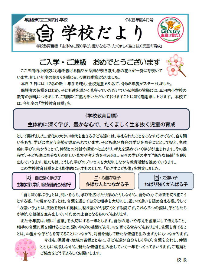 令和8年度 学校だより 4月号