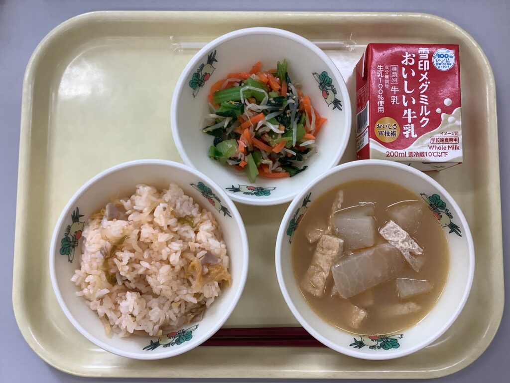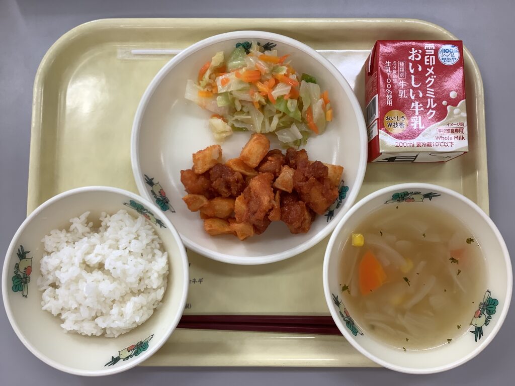 給食時間には5年生がお知らせを放送し、全校のみんなでおいしく味わっていただきました。