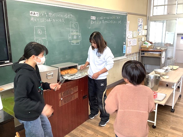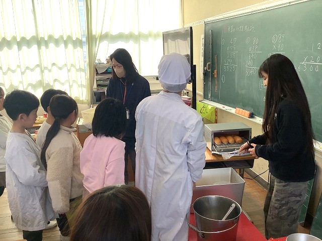 食を守る委員会主催で「パン焼き給食」を行いました。チーンという音とともに香ばしいにおいが教室にたちこめました。温かくなってふわふわのパンをほおばりながら、笑顔になる子どもたちの様子が見られました。