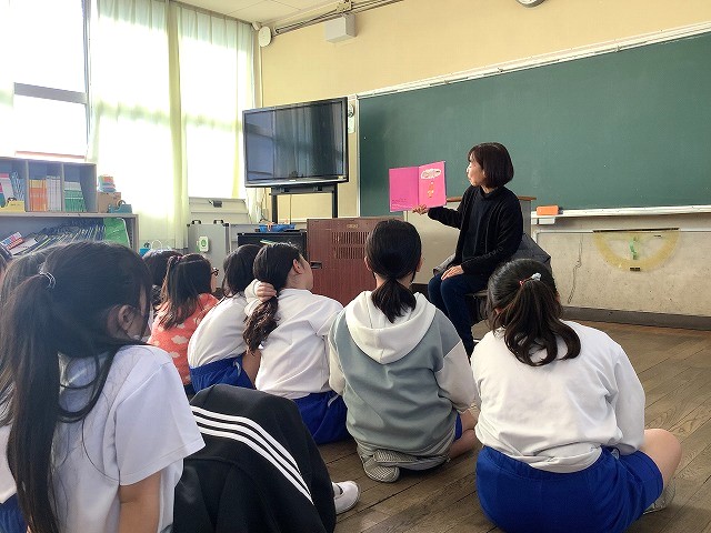 学校運営協議会、地域の皆さんにお越しいただき、読み聞かせをしていただきました。子どもたちは、どんな本を読んでもらえるのか、いつも楽しみにしています。声を出しながら楽しそうにするクラスもあれば、絵本の世界に引き込まれ、しっとりとお話に聞き入るクラスもありました。