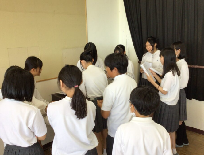 お互いの合唱を聴き合ったあと、パートごとに分かれ3年生が1年生にアドバイス等を行っていました。