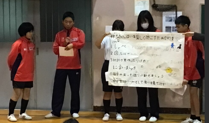 生徒は今日のために事前に準備を重ね今日を迎え、小学校の仲間と一緒にゲームをして交流を深めていました。
