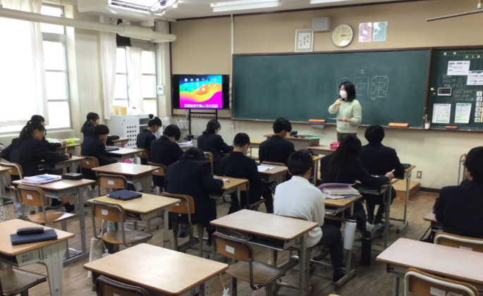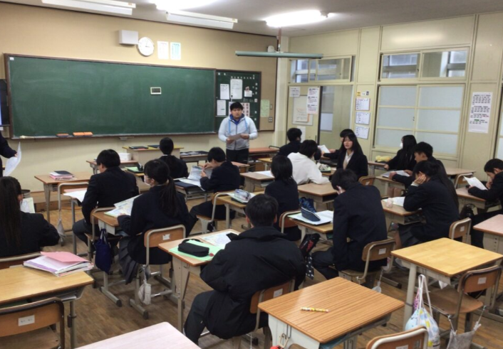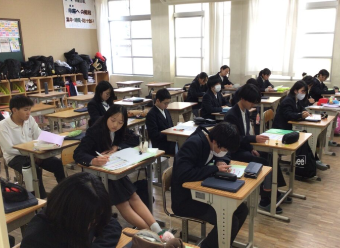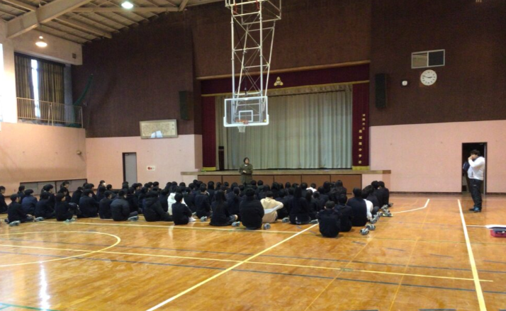 集会では、学年主任と学年の生徒指導担当から話があり、「今回の京都体験学習は3年生である、沖縄体験学習に向けて非常に重要な行事である。」こと、「ルールの中で、やるべきこと・守るべきことを守り、良い部分を発揮して欲しい。」「日々の過ごし方を見直そう。」などについての話がありました。