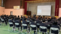 学校生活10日(金)の4時間目に学年集会を行いました。今年度は新しく2名の先生を迎え、8名の先生で学年を担当することになりました。集会では、各先生からの自己紹介と給食や掃除、生徒指導や学活など担当している役職に関わる話がありました。しっかり話を聞くことができ、よいスタートとなりました。