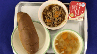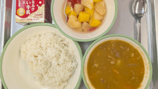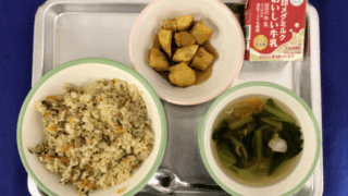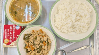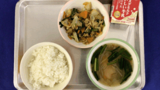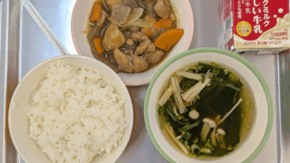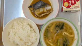 【今日の献立】ごはん、牛乳、さばの煮つけ、たまねぎのみそ汁