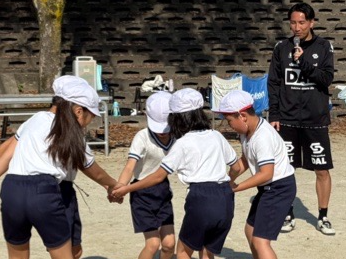 身近なスポーツのサッカーですが、プロからボールゲームを教わるということで、みんなキラキラした目をしていました。