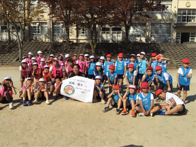 11月17日(月)3.4時間目、元プロサッカー選手の武岡優斗さんが来校され、授業をしていただきました。ボールを使った、シュート型のボールを使ったゲーム(セストボール)を今勉強している真っ最中の3年生。