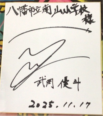 サインもいただきました!職員室前に飾っていますので、ぜひご覧ください。