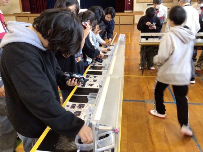 車を作るための流れ作業の体験をしました。たくさんある部品を間違いなく、供給、運搬し、それらを正確にそして素早く作るために、クラスみんなで協力して行いました。