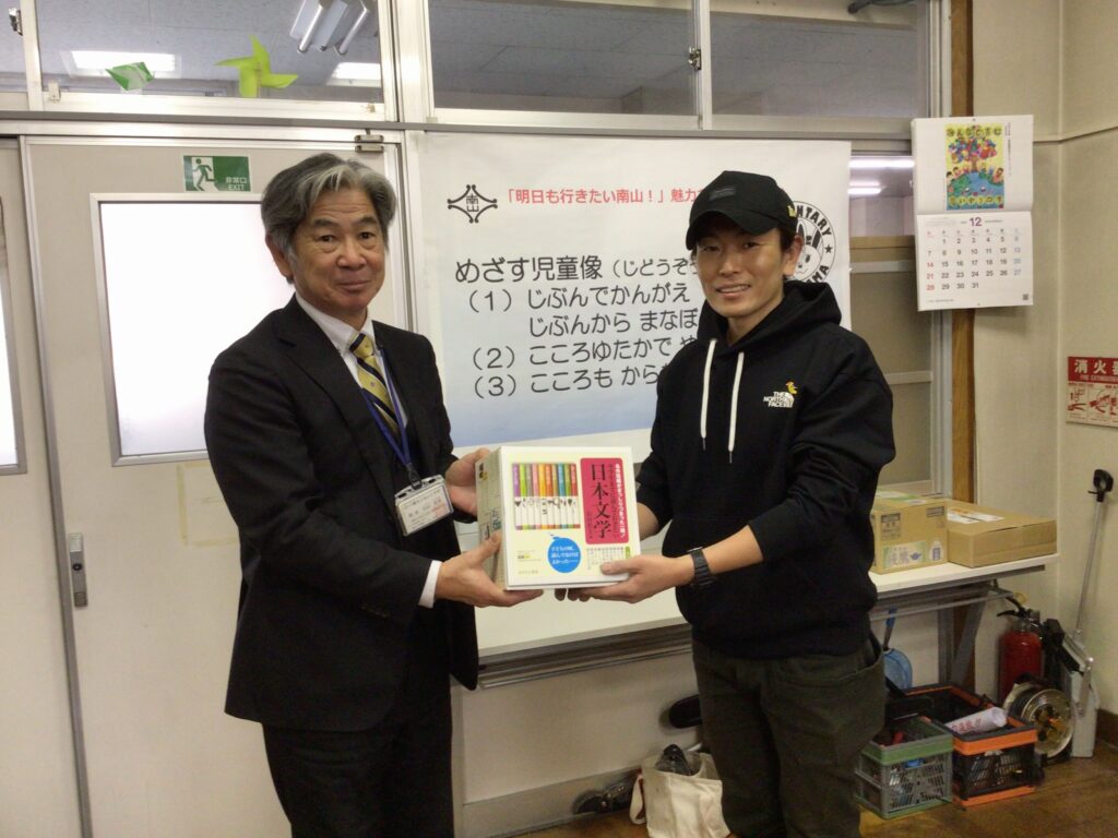 地域の美容室のアッシジヘアの竹本様より、100冊もの図書を寄贈いただきました。八幡で生まれ育ち、地域に何か社会貢献したいという思いで、小学校に図書を寄贈されているそうです。