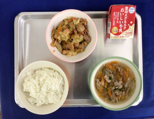 きょうの給食【今日の献立】”ごはん”牛乳”タッカルビ”春雨スープ”