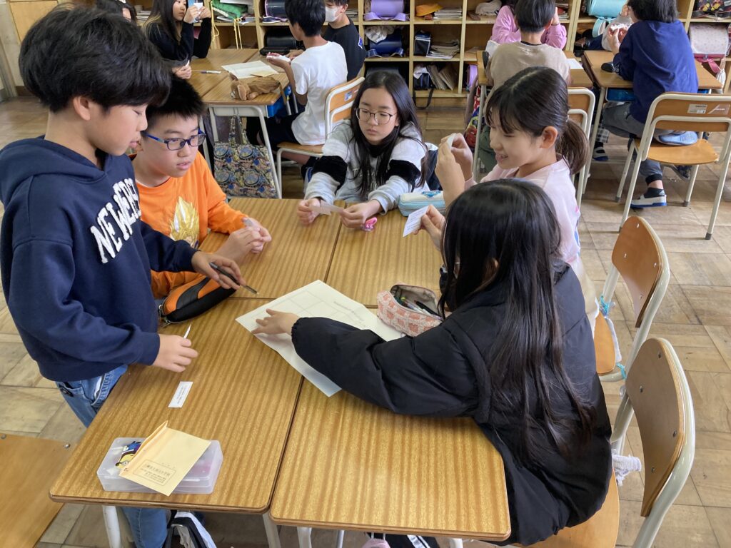 4年生:図工で学習したカードの作り方をいかして、お世話になっている人が嬉しくなるカードを心を込めて作りました。その人の好きなものや好きなことをカードにたくさん盛り込んでいました。