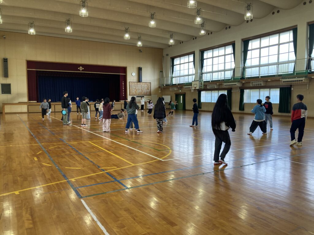 6年生:クラスでお楽しみ会に何をしたいか考え、今日はドッヂボールを楽しみました。体も大きくなったので、体育館いっぱい使っていました。ルールや投げるものを変えていました。